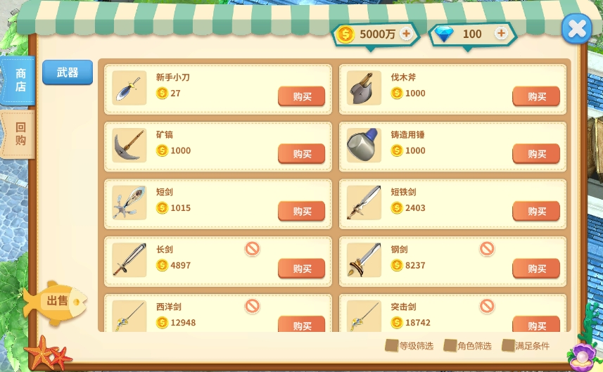 1.通过NPC商店购买基础装备。