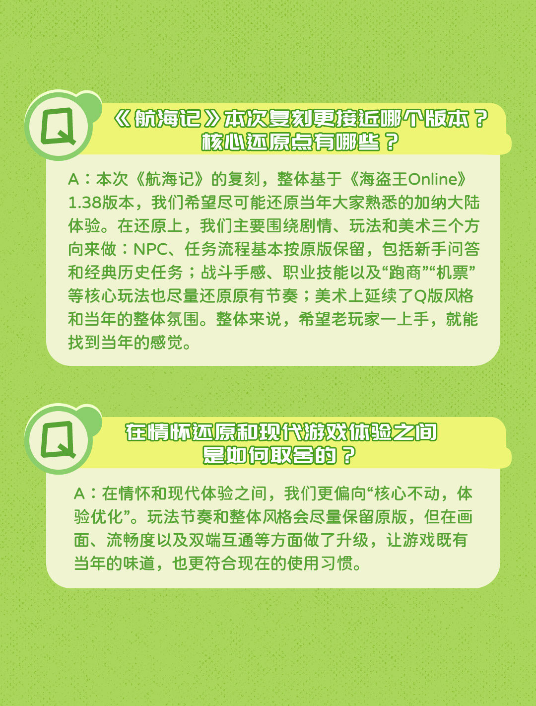 围绕近期航海家们关心的复刻还原与玩法体验相关反馈,我们在本期「航海日志」中进行了统一梳理与集中回应。未来,策划团队将通过本栏目持续与大家沟通版本规划与设计考量。在坚守经典内核的同时,我们也将不断优化细节,致力于带来更顺畅的冒险体验。